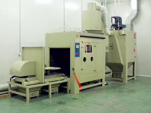 六 砂料分選 通過回收上來的砂料進入砂料循環(huán)系統(tǒng),該砂料循環(huán)系統(tǒng)配備了風選裝置,通過風選裝置,破損的砂料及粉塵被分離出來,風選的風量大小可以調(diào)整。通過風選后的砂料進入到噴砂倉中,粉塵被分離出去,進入到除塵器中。該分選方式是采用重心、高速旋轉(zhuǎn)的方式。
