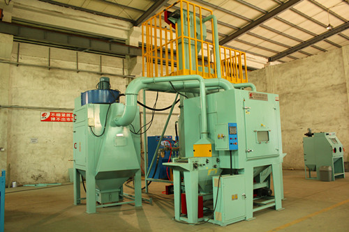 五 砂料的回收 噴砂后的砂料及粉塵通過風(fēng)力循環(huán)送至儲砂斗。主回砂管由特制的高耐磨無縫鋼管制作而成,管內(nèi)襯托高耐磨的硅膠板,可以保護管道的磨損。回收方式采用上進風(fēng),下抽的形式,有效的把砂料回收到儲砂斗內(nèi),回收效率可達到到99%。